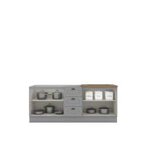 Itens Inclusos: Balcão Pia 03 Gavetas 02 Pts 82x120x51cm sem Tampo, Balcão 02 Portas 82x80x51cm com Tampo para Cooktop, Manual de Montagem, Kit Ferragens