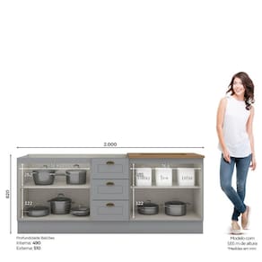 Medida de cada item (A x L x P): Balcão Pia 03 Gavetas 02 Portas 82x120x51cm sem Tampo, Balcão 02 Portas 82x80x51cm com Tampo para Cooktop.