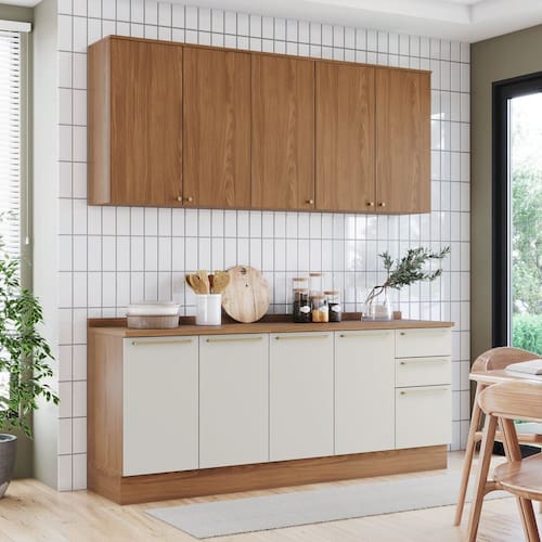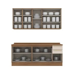 A Cozinha Compacta 4 Peças com Balcão Pia Yasmin Marrom/Areia HP é uma solução completa e funcional para espaços pequenos. Inclui um aéreo de 3 portas e outros 2 de 1 porta para armazenamento organizado, além de um balcão pia com tampo e um balcão de 2 portas. Esses móveis oferecem praticidade e eficiência na organização da cozinha, com um design moderno que se adapta facilmente a diferentes estilos de decoração. Acabamento da Prateleira: Pintura Texturizada UV Escala de Brilho da Prateleira: Fosco Acabamento da Gaveta: Pintura Texturizada UV Escala de Brilho da Gaveta: Fosco Material do Puxador da Gaveta: Alumínio Acabamento da Porta: Pintura Texturizada UV Escala de Brilho da Porta: Fosco Material do Puxador da Porta: Alumínio Acompanha Rodapé Decorativo: Sim Acompanha Tampo: Sim Altura dos Pés: 14 cm Altura Máxima dos Pés: 14.0000 Ambiente Principal: Cozinha Balcão Suporta Pia: Não codigo_ean: 7909903805909 Complexidade da Montagem: Alta: deve ser montado por um montador especializado Cor: Marrom/Areia HP Cor do Produto: Marrom/Areia HP Cor Interna: Trama Escala de Brilho: Fosco Espessura do Material da Estrutura: 15 mm Espessura do Tampo: 25 mm Gaveta com Chave: Não Informações Complementares: O balcão Pia pode ser montado com as gavetas dos 2 lados Itens Inclusos: 1 Cozinha Compacta, Kit Ferragens e Manual de Montagem Linha ou Coleção: Yasmin Manual de Montagem e Instalação: https://product-hub-prd.madeiramadeira.com.br/920699/documents/1a5004db-f7ee-40fe-af8d-554a48caf5cf2133770307517205432352181.pdf Marca: Espresso Móveis Material da Corrediça: Metálica Material da Dobradiça/Corrediça da Porta: Metálica Material da Gaveta: MDF/MDP Material da Porta: MDP Material da Prateleira: MDP Material do Fundo: mdf Material do Tampo: MDP Material dos Pés: MDF Medida de cada item (A x L x P): Aéreo 1 Porta: (A x L x P) 83 x 40 x 32,5 Cm; Aéreo 3 Portas: 83 x 120 x 32,5 Cm; Balcão 2 Portas: 82 x 80 x 51 Cm; Balcão Pia: 82 x 120 x 51 Cm modular: Sim Necessita Montagem: Sim O Balcão Acompanha Pia: Não Origem do Produto: Nacional Pés Reguláveis: Não Peso: 134 kg Peso Máximo por Gaveta: 3 kg Peso Máximo por Prateleira: 8 kg Possui Pés: Rodapé Possui Portas: Sim Possui Prateleiras: Sim Possui recorte para Cooktop: Não Possui Rodízio: Não Possui Vidro: Não Produto Montado: Sim Recomendações de Uso, Manutenção e Limpeza: Para limpeza de seu móvel, use uma flanela seca ou umedecida. Não utilize produtos químicos que possam danificar o produto. Sapatas Niveladoras: Não Sistema de Montagem: Parafusos e Cavilhas Suporta Até (kg): 145 kg Tamanho Indicado da Pia: 120 x 53 Tipo de Corrediça da Gaveta: Metálica Telescópica Tipo de Dobradiça da Porta: 35 mm Tipo de Puxador da Gaveta: Externo Tipo de Puxador da Porta: Externo