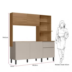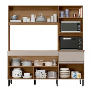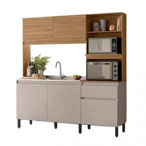 Características: Estrutura em MDP com chapa de 12mm Acabamento em impressão UV Verniz fosco com acabamento touch 5 Portas 1 Gaveta Pés Prateleira Dobradiças metálicas Corrediças metálicas Nicho para forno elétrico e micro-ondas Observação: Não acompanha pia nem tampo.