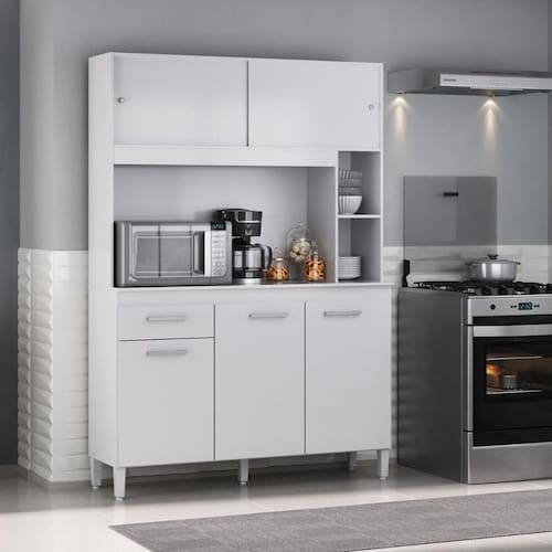 Cozinha Compacta 5 Portas 1 Gaveta com Tampo Ceara Atualle,l funcional e ideal para espacos pequenos. Feita de MDP resistente, conta com cinco portas, sendo duas deslizantes, otimizando o espaco, e tres convencionais. Inclui uma gaveta para utensilios pequenos e acessorios. Com design moderno e pes que garantem estabilidade, oferece eficiencia e funcionalidade em ambientes reduzidos.