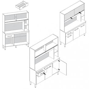 Caracteristicas: 1 Gaveta 1 Prateleira 5 Portas sendo duas de correr 5 Pes regulaveis Corredicas Slim 300mm Estrutura em MDP Dobradicas metal 26mm Puxadores 192 mm cromado Sistema de montagem parafusos, cavilhas e minifix