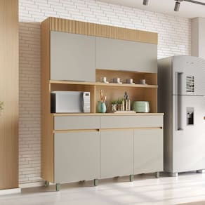 Está precisando de uma ajudinha para dar aquela organizada na cozinha com estilo? Então, nossa cozinha compacta é tudo que você estava procurando. Os balcões com gavetas de corrediça telescópica com abertura total e organizador de talheres, além de espaço de sobra para organizar tudo o que você precisa. Mas o destaque especial vai para sua parte superior ripada, que traz aquele toque de elegância e sofisticação que transforma qualquer ambiente. O ripado não só garante um visual diferenciado, como também adiciona textura e estilo, fazendo desse armário uma peça de destaque na sua decoração . Um kit perfeito para você otimizar o seu espaço com estilo e praticidade, sem abrir mão de um design apaixonante. A escolha perfeita para a sua rotina em família. Acabamento da Prateleira: Impressão Escala de Brilho da Prateleira: Semi-Brilho Acabamento da Gaveta: Impressão Escala de Brilho da Gaveta: Semi-Brilho Material do Puxador da Gaveta: Alumínio Acabamento da Porta: Impressão Escala de Brilho da Porta: Semi-Brilho Material do Puxador da Porta: Alumínio Acompanha Tampo: Sim Altura dos Pés: 10 cm Ambiente Principal: Cozinha Complexidade da Montagem: Alta: deve ser montado por um montador especializado Cor: Carvalho/Greige Cor do Produto: Carvalho/Greige Escala de Brilho: Semi-Brilho Gaveta com Chave: Não Informações Complementares: Tampo de 25mm; dobradiças de 35mm Itens Inclusos: 1 Cozinha, 1 Manual de Montagem e 1 Kit Ferragens. Manual de Montagem e Instalação: https://product-hub-prd.madeiramadeira.com.br/952315/documents/d615d68e-1989-4c44-9386-292f8cb34e7a47061727206616952315111986.pdf Material da Dobradiça/Corrediça da Porta: Metálica Material da Gaveta: MDF Material da Porta: MDF Material da Prateleira: MDF Material do Tampo: MDF Material dos Pés: Plástico Necessita Montagem: Sim O Balcão Acompanha Pia: Não Origem do Produto: Nacional Pés Reguláveis: Sim Peso: 99,84 kg Peso Máximo por Gaveta: 5 kg Peso Máximo por Prateleira: 10 kg Possui Pés: 08 Possui Portas: Sim Possui Prateleiras: Sim Possui recorte para Cooktop: Não Possui Rodízio: Não Recomendações de Uso, Manutenção e Limpeza: Utilizar pano macio levemente umedecido e na sequencia pano macio seco. Sapatas Niveladoras: Sim Sistema de Montagem: Parafusos e Cavilhas Suporta Até (kg): 110 kg Tamanho Indicado da Pia: . Tipo de Corrediça da Gaveta: Telescópica Tipo de Dobradiça da Porta: 35 mm Tipo de Puxador da Gaveta: Externo Tipo de Puxador da Porta: Externo