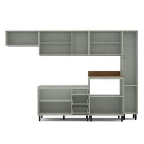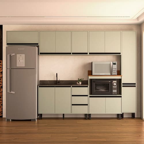 Características: Estrutura MDP Pintura UV 11 Portas com dobradiças metálicas 01 Porta com pistão à gás 03 Gavetas com corrediças telescópicas 01 Nicho para eletroportáteis Puxadores de Plástico 13 pés em plástico Possui prateleiras com amplo espaço Peso suportado nas Prateleiras Estruturais: 10kg Peso suportado nas Prateleiras: 5kg Peso suportado nas Gavetas: 3kg *Não acompanha Tampo*