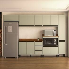 Características: Estrutura MDP Pintura UV 11 Portas com dobradiças metálicas 01 Porta com pistão à gás 03 Gavetas com corrediças telescópicas 01 Nicho para eletroportáteis Puxadores de Plástico Possui prateleiras com amplo espaço 13 pés em plástico Peso suportado nas Prateleiras Estruturais: 10kg Peso suportado nas Prateleiras: 5kg Peso suportado nas Gavetas: 3kg *Acompanha Tampo*