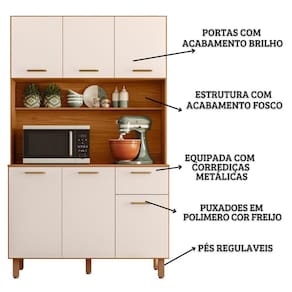 A Cozinha Compacta Livi é a solução ideal para quem busca praticidade e estilo. Com 6 portas de bater e 1 gaveta com corrediças metálicas 30mm, oferece amplo espaço de armazenamento e se destaca pelo detalhe ripado gráfico nas portas superiores, que agrega um toque moderno ao ambiente. Além disso, conta com um nicho organizador decorativo ( x x cm) e um espaço perfeito sobre o balcão ( x x cm) para aparelhos e utensílios domésticos. Para maior resistência e praticidade, o produto conta com dobradiças metálicas reforçadas de 26 mm, puxadores em polímero ouro fosco e pés reguláveis em PVC de 17 cm, garantindo o nivelamento ideal e um acabamento sofisticado. Sua estrutura em MDP 15mm e portas com pintura UV acetinada oferecem não apenas durabilidade, mas também um acabamento fácil de limpar. Ideal para quem busca aliar estética e praticidade, transformando a cozinha em um espaço agradável e eficiente. Este móvel chegará em sua casa separado em 1 volume.