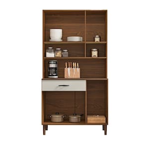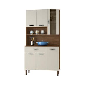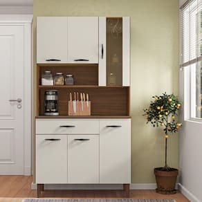 Características: Produzido em MDP de 12mm e 15 mm, 6 Portas - sendo uma porta superior com vidro, Dobradiças e corrediças metálicas, 1 Gaveta, Puxador ergonômico em plástico resistente poliestiren, Pés fixos em plástico resistente polipropileno.