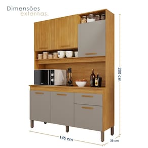 Transforme o estilo e a funcionalidade da sua cozinha com o Kitão Nápoles. Este móvel é a combinação ideal de praticidade e elegância, projetado para atender às suas necessidades diárias. Com 1 gaveta que possuem corrediças telescópicas e 6 portas. O Kitão Nápoles oferece amplo armazenamento para todos os seus utensílios de cozinha. A pintura UV de alta qualidade proporciona um acabamento durável e resistente, enquanto os pés ajustáveis garantem estabilidade e adaptabilidade ao seu espaço. Com 2 prateleiras internas, você pode organizar seus itens de maneira eficiente. Além disso, o nicho decorativo permite expor objetos decorativos, personalizando ainda mais o espaço. Acabamento da Prateleira: Pintura UV Escala de Brilho da Prateleira: Semi-Brilho Acabamento da Gaveta: Pintura UV Acabamento da Porta: Pintura UV Escala de Brilho da Porta: Semi-Brilho Acompanha Tampo: Sim Ambiente Principal: Cozinha Balcão Suporta Pia: Não codigo_ean: 7900288121172 Complexidade da Montagem: Alta: deve ser montado por um montador especializado Cor: Cinamomo / Cinza Acetinado Cor do Produto: Cinamomo / Cinza Acetinado Escala de Brilho: Semi-Brilho Gaveta com Chave: Não Itens Inclusos: 1 Armário de Cozinha, Manual de Montagem e Kit ferragens. Manual de Montagem e Instalação: https://product-hub-prd.madeiramadeira.com.br/898604027/documents/dbf8933d-793b-4291-a33f-7ef9dc99149e2855317493817447378835556.pdf Marca: CHF Material da Dobradiça/Corrediça da Porta: Metálica Material da Gaveta: MDP Material da Porta: MDP Material da Prateleira: MDP Material do Tampo: MDP Material dos Pés: Polipropileno modular: Não Necessita Montagem: Sim O Balcão Acompanha Pia: Não Origem do Produto: Nacional Pés Reguláveis: Sim Peso: 57,2 kg Peso Máximo por Gaveta: 3 kg Peso Máximo por Prateleira: 5 kg Possui Pés: 05 Possui Portas: Sim Possui Prateleiras: Sim Possui recorte para Cooktop: Não Possui Rodízio: Não Produto Montado: Sim Recomendações de Uso, Manutenção e Limpeza: Limpeza com pano macio e levemente umedecido. Não utilizar solventes a base e de inflamáveis. Não utilizar produtos abrasivos. Sapatas Niveladoras: Não Sistema de Montagem: Parafusos e cavilhas Tamanho Indicado da Pia: 40 x 40 Tipo de Corrediça da Gaveta: Metálica Telescópica Tipo de Dobradiça da Porta: 35 mm Tipo de Puxador da Gaveta: Externo Tipo de Puxador da Porta: Externo