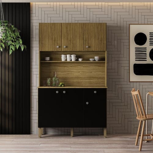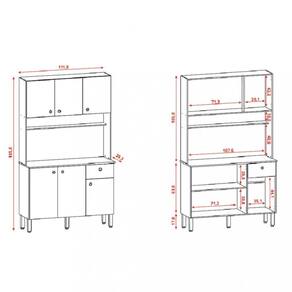 Produzido em MDP de 12mm e 15 mm 6 portas 1 gaveta Prateleira interna Dobradiças e corrediças telescópicas 100 metálicas Puxador ergonômico em poliestireno Pés reguláveis em polipropileno Acabamento em pintura com secagem em luzes UV.