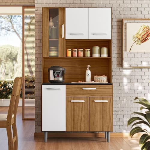 A Cozinha Compacta Coral destaca-se por sua praticidade e eficiência de uso, podendo ser utilizado em qualquer ambiente ou até mesmo como complemento de cozinha. Possui 01 porta com detalhe em vidro além de mais 05 portas de bater proporcionando amplo espaço interno, 01 gaveta com corrediças metálicas, espaço para eletrodomésticos, nicho organizador decorativo x x , puxadores em polímero, pés PVC fixos de 13cm. Estrutura em MDP 15mm Perffect Touch de maior resistência e portas MDP 12mm em pintura UV. Ideal para quem busca aliar estética e praticidade, transformando a cozinha em um espaço agradável e eficiente. Este móvel chegará em sua casa separado em 1 volume.