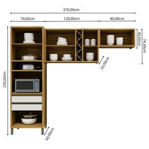 Para a organização dos seus utensílios e mantimentos, esta cozinha conta com 2 prateleiras espaçosas, permitindo que você mantenha tudo em ordem e ao seu alcance.