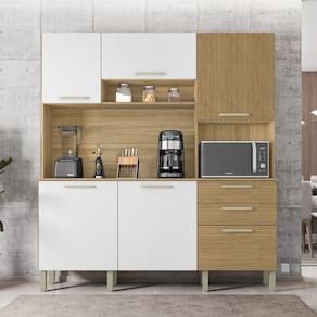 Cozinha Ferrara traz a tona todo o conceito de amplitude e organização para o ambiente, amplas repartições e nichos compõem a peça para melhor dispor de objetos e afins. Contém também espaço para forno ou micro, trazendo a praticidade de ter tudo em um só produto. Além de respeitar o meio ambiente a cozinha Ferrara vem com o acabamento com pintura fosca e textura sensível ao toque.