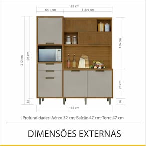 Um novo conceito de cozinha Compacta, a Cozinha Compacta Loft Imperatriz Nesher proporciona um design contemporâneo sem necessidade de instalação em paredes, ideal para jovens casais. Versátil, pode ser utilizado em áreas gourmet, varandas, escritórios e cozinhas. Projetado para proporcionar praticidade e funcionalidade no uso diário, produzida com matérias prima de alto nível, ferragens diferenciadas e 100% MDF. Acabamento da Prateleira: Impressão Escala de Brilho da Prateleira: Semi-Brilho Acabamento da Gaveta: Impressão Escala de Brilho da Gaveta: Semi-Brilho Acabamento da Porta: Impressão Escala de Brilho da Porta: Semi-Brilho Acabamento dos Pés: Pintura Acompanha Tampo: Sim Altura dos Pés: 16 cm Ambiente Principal: Cozinha Complexidade da Montagem: Média: pode ser montado por mais de uma pessoa e/ou necessite de maior conhecimento para montagem Cor: Amadeirado Freijó/Off White Cor do Produto: Amadeirado Freijó/Off White Cor Flex: Não Cor Interna: Amadeirado Freijó Escala de Brilho: Semi-Brilho Gaveta com Chave: Não Itens Inclusos: 1 Cozinha Compacta e Manual de Montagem Linha ou Coleção: Imperatriz Manual de Especificação Técnica: https://cdn2.madeiramadeira.com.br/atributo/nesher-moveis/920826-manual-de-montagem-cozinha-6-portas-2-gavetas-loft-nesher-imperatriz-100-mdf.pdf Manual de Montagem e Instalação: https://cdn2.madeiramadeira.com.br/atributo/nesher-moveis/920896-manual-de-montagem-cozinha-6-portas-2-gavetas-loft-nesher-imperatriz-100-mdf.pdf Material da Gaveta: MDF Material da Porta: MDF Material da Prateleira: MDF Material do Fundo: DURATREE Material do Tampo: MDF Material dos Pés: Polipropileno Montagem Flex: Não Necessita Montagem: Sim O Balcão Acompanha Pia: Não Origem do Produto: Nacional Pés Reguláveis: Sim Peso: 124 kg Peso Máximo por Gaveta: 5 kg Peso Máximo por Prateleira: 7,5 kg Possui Pés: 08 Possui Portas: 06 Possui Prateleiras: 03 Possui recorte para Cooktop: Não Possui Rodízio: Não Recomendações de Uso, Manutenção e Limpeza: Pano macio levemente umedecido e na sequência pano macio seco. Sapatas Niveladoras: Sim Sistema de Montagem: Parafusos, cavilhas e minifix Tamanho Indicado do Tampo ou Pia: NA Tipo de Corrediça da Gaveta: Telescópica Tipo de Dobradiça da Porta: Tipo de Puxador da Gaveta: Embutido Tipo de Puxador da Porta: Embutido