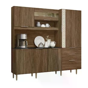 - Estrutura reforçada em MDPde 15 mm; - 6portas com dobradiças metálicas; - 1portade vidro reflecta com pistão a gás; - 3gavetas com corrediças telescópicas; - 8 Pés na cor da caixa com regulagem de altura; - Prateleiras profundas; - Com forro etampo; - Tampo na cor ônix; - Aplique fixo; - Puxadores em alumínio; - Acompanha manual e todos os acessórios para montagem.
