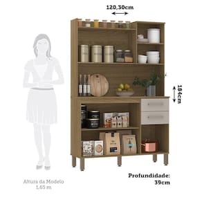 Informacoes Complementares: Tampo 15mm. Fundos em HDF 3mm. Permite o uso de forno ou micro-ondas. ATENCAO: Na utilizacao de FORNO ELETRICO/GAS e obrigatoria a retirada do fundo (risco de super aquecimento). As dimensoes maximas do forno devem respeitar a margem de respiro, necessitando folga de 5cm entre forno e laterais do movel.
