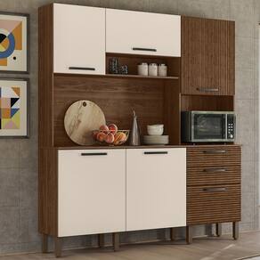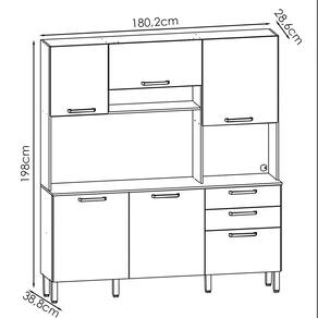 Perfeita para otimizar ambientes com praticidade e estilo, a Cozinha Compacta é produzida em MDP de 15mm e conta com 06 portas, sendo uma basculante com suporte à gás e as demais com dobradiças 100% metálicas. Possui ainda 02 gavetas com corrediças telescópicas, nichos decorativos, prateleiras internas e um espaço funcional para forno ou micro-ondas. Os pés reguláveis e os puxadores são fabricados em plástico resistente, assegurando conforto no uso e estabilidade. O acabamento em pintura UV (fosco ou semibrilho) completa o visual moderno do móvel. Este móvel chegará em sua casa separado em 02 volumes.