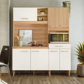 Cozinha Compacta 7 Portas 1 Gaveta Yara Freijó/Off White - Branco