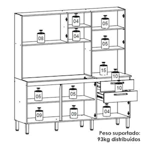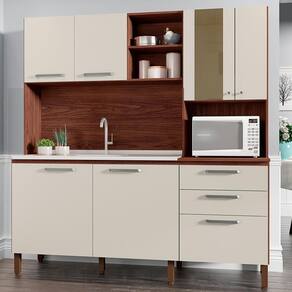 Perfeita para otimizar ambientes com praticidade e estilo, a Cozinha Compacta com espaço para pia é produzida em MDP de 15mm. Possui 07 portas, sendo uma com vidro, e 02 gavetas, equipadas com dobradiças e corrediças telescópicas 100% metálicas. O design conta com nicho decorativo para pequenos objetos, prateleiras internas e um espaço funcional para micro-ondas. Os pés reguláveis e os puxadores são fabricados em plástico resistente, assegurando conforto no uso e estabilidade. O acabamento em pintura UV (fosco ou semibrilho) completa o visual moderno do móvel. Não acompanha pia nem tampo. Este móvel chegará em sua casa separado em 03 volumes.