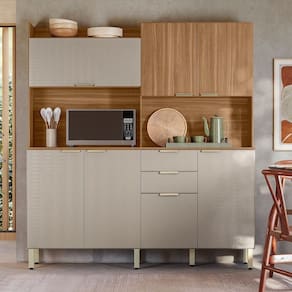 A Cozinha Compacta 7 Portas 2 Gavetas com Tampo Pitaya Dem?bile ? a uni?o perfeita entre eleg?ncia e funcionalidade. Com 7 portas, 2 gavetas e tampo incluso, oferece ampla capacidade de armazenamento para panelas, lou?as, eletro port?teis e utens?lios. Sua bancada pode ser utilizada para preparo de receitas ou como um cantinho do caf?. Fabricada em MDP com acabamento Prime TX, garante durabilidade, resist?ncia e um toque agrad?vel. Conta com corredi?as e dobradi?as met?licas, p?s regul?veis que protegem contra umidade e pintura UV para maior sofistica??o. Os puxadores em pl?stico ABS e o pist?o a g?s completam o design moderno e pr?tico. Transforme sua cozinha com o Kit Pitaya!