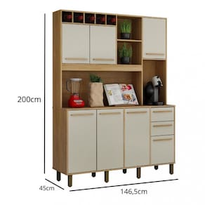 A Cozinha Compacta Granada conta com sete portas e duas gavetas,além de cinco compartimentos para garrafas, é projetada para trazer maior modernidade e praticidade para sua cozinha, aproveitando cada cantinho do seu espaço.