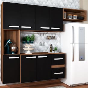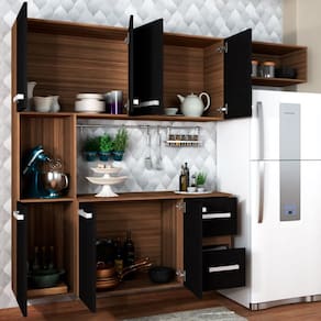 O(a) Cozinha Compacta 7 Portas 2 Gavetas Suspensa Armário e Balcão Jéssica Teka/Grafite - Loja é produzido em MDP na escala de brilho Fosco, e possui um grau de dificuldade de montagem: Fácil.