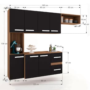 - Observação: Pode ser utilizada com geladeira no lugar do fogão de até 65 cm.