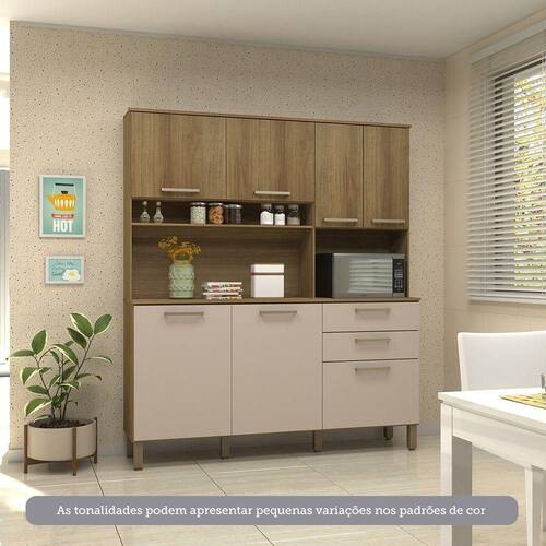 Informacoes Complementares: Tampo 15mm. Fundos em HDF 3mm. Permite o uso de forno ou micro-ondas. ATENCAO: Na utilizacao de FORNO ELETRICO GAS e obrigatoria a retirada do fundo risco de super aquecimento. As dimensoes maximas do forno devem respeitar a margem de respiro, necessitando folga de 5cm entre forno e laterais do movel.