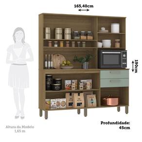 Coz Compacta 165,40cm 7 Pt E 2 Gv +tampo 353 Luciane Móveis Carvalho/avela/verde Mar