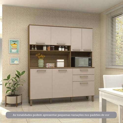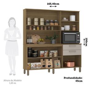 Informacoes Complementares: Tampo 15mm. Fundos em HDF 3mm. Permite o uso de forno ou micro-ondas. ATENCAO: Na utilizacao de FORNO ELETRICO GAS e obrigatoria a retirada do fundo risco de super aquecimento. As dimensoes maximas do forno devem respeitar a margem de respiro, necessitando folga de 5cm entre forno e laterais do movel.