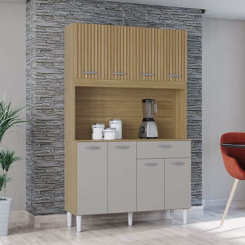 A Cozinha Compacta 8 Portas 1 Gaveta Cassia Poquema é ideal para espaços reduzidos, oferecendo funcionalidade e organização. Com 8 portas e 1 gaveta , possui estrutura em MDP 12 mm , acabamento em pintura UV , corrediças e dobradiças metálicas, além de puxadores e pés de plástico para maior durabilidade.