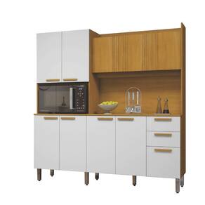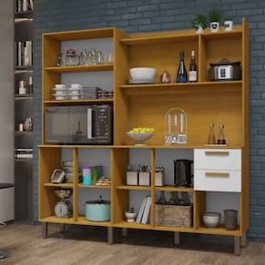 Características: 8 Portas, incluindo porta para nicho de micro-ondas 2 Gavetas com corrediças telescópicas 3 Prateleiras para melhor organização Acabamento em Pintura UV Design moderno e funcional, ideal para cozinhas completas e organizadas Detalhes portas superiores com elegantes frisos decorativos Estrutura em MDF/MDP 15mm Nicho decorativo, ideal para exposição de objetos ou utensílios Pés com regulagem de altura Possui puxadores
