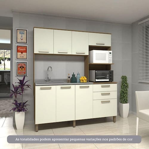 Desenvolvida para quem busca qualidade e charme, a Cozinha 354 e perfeita! Estruturas em 100 MDP que oferecem maior resistencia e durabilidade ao movel. Possui estilo classicos, garantindo conforto e aconchego para sua Cozinha. Ideal para espacos menores.