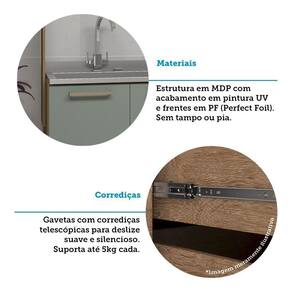 Informacoes Complementares: Porta basculante com abertura auxiliada por pistao a gas. Pode ser com tampo ou pia, porem ambos nao acompanha o produto. Fundos em HDF 3mm. Permite o uso de forno ou micro-ondas. ATENCAO: Na utilizacao de FORNO ELETRICO GAS e obrigatoria a retirada do fundo risco de super aquecimento. As dimensoes maximas do forno devem respeitar a margem de respiro, necessitando folga de 5cm entre forno e laterais do movel.