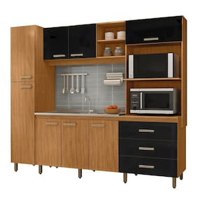 A Cozinha Vitória é perfeita e se adapta em seu ambiente. Produzida 100% em MDP, toda em chapa 15 mm, possui gavetas com corrediças metálicas, basculante com pistão a gás, amplo paneleiro com 4 prateleiras internas, balcão com prateleira interna, espaço para forno e microondas com reforço que impede o empenamento. Ela ainda possui modernos puxadores em ABS com acabamento na cor champagne e pés com regulagem de altura. É moderna e une qualidade e beleza para seu ambiente. Não acompanha pia, torneira e acessórios. Acabamento da Prateleira: Pintura Escala de Brilho da Prateleira: Fosco Acabamento da Gaveta: Pintura Material do Puxador da Gaveta: ABS Acabamento da Porta: Pintura UV Escala de Brilho da Porta: Fosco Material do Puxador da Porta: ABS Acompanha Tampo: Não Ambiente Principal: Cozinha Balcão Suporta Pia: Sim codigo_ean: 7900288081858 Complexidade da Montagem: Média: pode ser montado por mais de uma pessoa e/ou necessite de maior conhecimento para montagem Cor: Freijó/Preto Cor do Produto: Freijó/Preto Cor Interna: Freijó Escala de Brilho: Fosco Espessura do Material da Estrutura: 15 mm Gaveta com Chave: Não Itens Inclusos: 1 Cozinha Compacta, 1 Manual de Montagem Manual de Montagem e Instalação: https://product-hub-prd.madeiramadeira.com.br/589255/documents/05777461-b86d-4153-81c7-afc227e05f0fmanualcozinhavitriaref8008.pdf Marca: Marafon Móveis Material da Corrediça: Metálica Material da Dobradiça/Corrediça da Porta: Alumínio Material da Gaveta: MDP Material da Porta: MDP Material da Prateleira: MDP Material dos Pés: ABS Necessita Montagem: Sim O Balcão Acompanha Pia: Não Origem do Produto: Nacional Pés Reguláveis: Sim Peso: 133,2 kg Peso Máximo por Gaveta: 5 kg Peso Máximo por Prateleira: 5,1 kg Possui Pés: 10 Possui Portas: Sim Possui Prateleiras: Sim Possui recorte para Cooktop: Não Possui Rodízio: Não Recomendações de Uso, Manutenção e Limpeza: Utilizar pano limpo e macio, isento de impurezas, seco ou levemente umedecido com água e sabão neutro. Não devem ser utilizados abrasivos como palha de aço e objetos cortantes. Não expor o produto diretamente a luz solar. Sapatas Niveladoras: Não Sistema de Montagem: Parafusos, Porca Cilindrica, Cavilhas e Pregos Tamanho Indicado da Pia: 1.2 Tamanho Indicado do Tampo: 1.2 Tamanho Indicado do Tampo ou Pia: 1.2 Tipo de Corrediça da Gaveta: Metálica Simples Tipo de Dobradiça da Porta: Simples Tipo de Puxador da Gaveta: Externo Tipo de Puxador da Porta: Externo Marca: Marafon Móveis