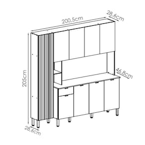 Perfeita para otimizar ambientes com praticidade e estilo, a Cozinha Compacta é produzida em MDP de 12mm e 15mm. Possui 09 portas equipadas com dobradiças com amortecimento, que garantem um fechamento suave e silencioso. As portas superiores são do tipo passante e a do paneleiro lateral possui sistema de fecho toque, dispensando puxadores. Além disso, o design conta com 01 gaveta com corrediças telescópicas 100% metálicas, nicho decorativo e prateleiras internas. Os pés reguláveis são fabricados em plástico resistente, e os puxadores em alumínio. O acabamento em pintura UV (fosco ou semibrilho) completa o visual moderno do móvel. Este móvel chegará em sua casa separado em 03 volumes.