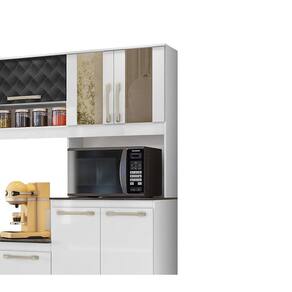 Cozinha Compacta 9 Portas Pétala Branco Uv/Preto Tridimensional - Nicioli