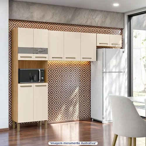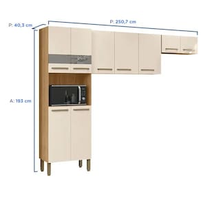Características: Marca: Kits Paraná Modelo: Versalhes Tipo: Cozinha compacta Quantidade de portas: 9 portas Tipo de dobradiças: Metálicas Material da estrutura: MDP Material dos puxadores: Plástico Nichos: 1 Pés reguladores: Sim Acabamento: Pintura UV