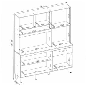 A Cozinha Compacta Alamo possui design moderno e funcional! Essa cozinha é uma facilitadora na hora de organizar a sua cozinha. Acompanha pés com regulagem de altura, possui uma estrutura totalmente em MDP de alta qualidade, aumentando a durabilidade, resistência e qualidade do produto. Possui 1 gaveta grande com corrediças metálicas, diversas prateleiras internas, 6 portas com puxadores champanhe são modernos e resistentes, espaço para micro-ondas e um amplo nicho garantem o visual moderno e elegante.
