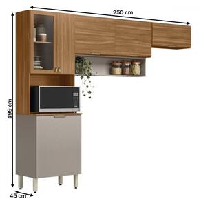 O(a) Cozinha Compacta Alba 6 Portas com Vidro Amêndola/Nude Prime Tx - Demóbile é produzido em MDP na escala de brilho Fosco, e possui um grau de dificuldade de montagem: Médio.