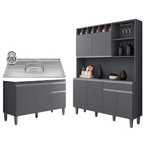 A Cozinha Compacta Alice e Balcão Gabinete Com Pia Tatiane 120cm Cinza, da JL Móveis é o que faltava aí na sua casa, confira abaixo os detalhes!