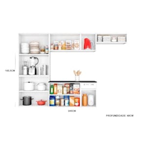 Dimensoes Altura: 165 cm Largura: 245 cm Profundidade: 40 cm Peso: 46,200 Kg