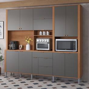 Kit Cozinha 2,40m Lukaliam Móveis Compacta Astra 10 Portas e 4 Gavetas