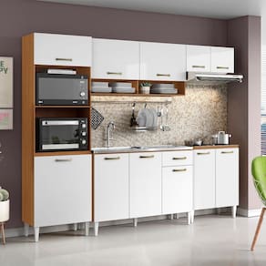 Cozinha Compacta Atenas Balcão 120cm com Pia e Cuba GhelPlus e Balcão 70cm Cinamomo Branco Aramóveis - Branco | Cinamomo