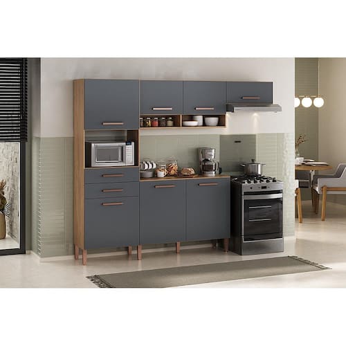 Cozinha Compacta Atualle Fortaleza 187cm 7 Portas 2 Gavetas MDP - Canelato/Grafite