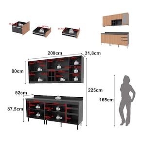 Itens Inclusos: (CZ1200) 01 Balcão de 120cm 01 Tampo de 120cm 01 Balcão de 80cm 01 Tampo de 80cm 01 Aéreo de 120cm com Porta de Vidro 01 Aéreo de 80cm