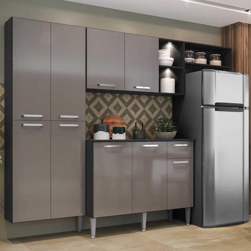 A Cozinha Completa Compacta com 2 Leds, Armário e Balcão com Tampo 3 peças Pequim Sun Multimóveis tem um excelente custo benefício e um amplo espaço interno. Os módulos são individuais e você pode montar da maneira que se adaptar melhor ao seu ambiente (exceto o nicho para fogão/geladeira que é anexo ao armário aéreo). O paneleiro pode ser montado de forma suspensa, o que permite você ajustar a altura para encaixar a geladeira. Produzida em MDP, que garante maior durabilidade e resistência, possui corrediças metálicas (mais leveza no manuseio), pés com regulagem de altura (permitem um perfeito nivelamento dos módulos), puxadores em ABS com acabamento cromado e tampos em MDP 15mm com pintura de alta resistência. Para deixar sua cozinha mais bonita e organizada, possui compartimento especial para utensílios mais altos e módulo aéreo com nichos. As luminárias em LED, que acompanham a cozinha, proporcionam um visual mais bonito e moderno, deixando o ambiente aconchegante e confortável. Com design minimalista e de fácil instalação, você pode escolher em qual lugar do móvel deseja fixar. Com luz brilhante, a luminária funciona com 3 pilhas AAA que já estão inclusas.