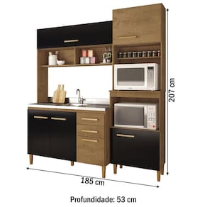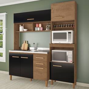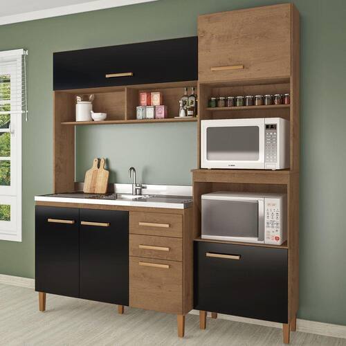 Cozinha Compacta Casablanca 5 Portas 2 Gavetas Canelato Rústico/preto Fosco - Atualle Móveis