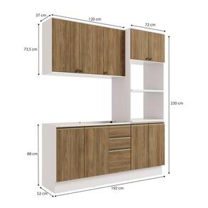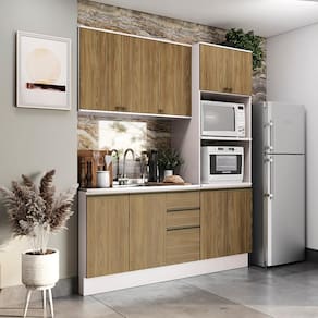 Complete sua cozinha com toda a beleza e praticidade que o Combo CB1299 da Cozinha Celeste da Kappesberg oferece. Compacto e funcional, ele conta com as divisórias perfeitas para manter seu espaço sempre organizado. Produzida em MDF de 15mm, o que proporciona robustez, firmeza e qualidade, além de um acabamento perfeito, o combo possui três peças, encaixando facilmente em todos os ambientes. E com até sete camadas de pintura, a caixaria é em pintura na cor branca e acabamento brilho, enquanto as frentes são na cor nogueira, com pintura touch. Uma combinação linda e aconchegante, perfeita para compor a sua cozinha de um jeito único, e remetendo aos tons da natureza, você terá o espaço ideal para preparar suas receitas com praticidade. Com módulo para eletrodomésticos, o kit forno e microondas possui prateleiras reforçadas em 25mm, garantindo o máximo de segurança. Com três peças, o conjunto possui 2,30m de altura e 1,92m de largura, uma ótima opção para quem possui pouco espaço mas não abre mão de organização. E para um melhor acabamento, o combo possui pés, mas acompanha as ferragens para ser montado suspenso na parede, deixando sua cozinha do seu jeito. Os diferenciais ficam por conta das dobradiças com amortecimento, garantindo um fechamento suave e sem ruídos, das corrediças telescópicas e os puxadores na cor dourada, com modelos diferentes no balcão e aéreos, completando o estilo e a qualidade do produto. Viva momentos especiais e renove seu espaço com a Cozinha Celeste da Kappesberg.