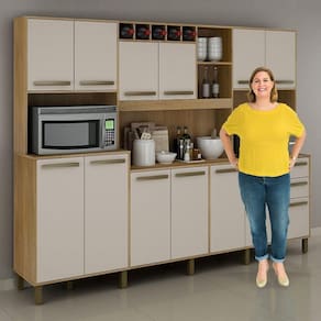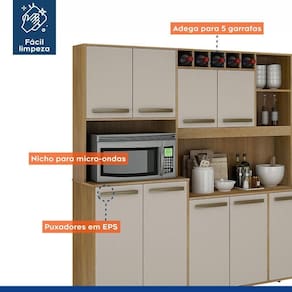 Espaco para organizar tudo o que voce precisa e um design pensado para deixar o seu comodo de chef mais bonito: essas vantagens voce so encontra no Armario Agata! Unindo compartimentos internos essenciais, ela recebe bem os utensilios, panelas, loucas e embalagens de alimentos, alem de acomodar tambem aqueles eletrodomesticos indispensaveis para um dia a dia mais pratico. Enquanto isso, por fora, a estrutura tradicional, que se encaixa muito bem no ambiente, carrega uma coloracao sobria que e reforcada pelos puxadores discretos, perfeitos para quem quer acrescentar charme a decoracao sem deixar de lado a elegancia de uma peca versatil. Dai e so comprar os moveis e acessorios que vao complementar essa parte importante da casa e pronto! Ja pode curtir otimas refeicoes com a familia)