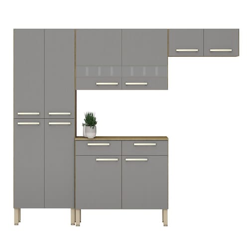 Cozinha Compacta Com Balcão 221cm Vivian Freijó/Gris Z06 - Mpozenato